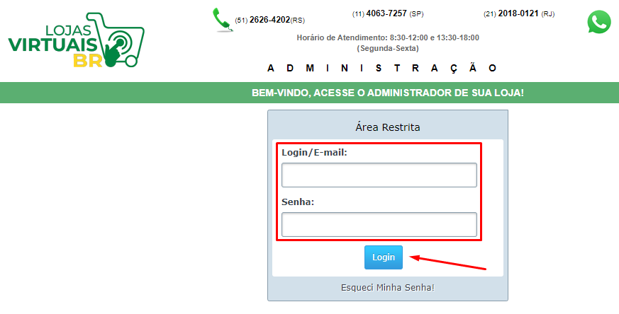 1 - Acesse o link: http://www.lojasvirtuais-br.com.br/adm