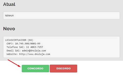5 - Na próxima página, clique no botão "CONCORDO" para confirmar a alteração do seu provedor de serviço.