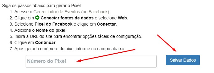 2 - Informe o "Número do Pixel" e após clique no botão "Salvar Dados".