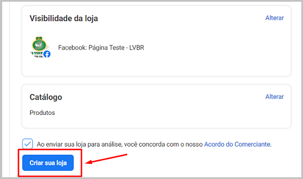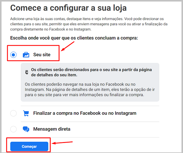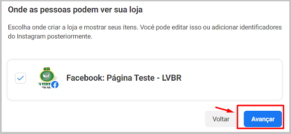 6. Na seção Onde as pessoas podem ver sua loja, selecione onde você deseja criar sua loja. Se você tem um perfil comercial do Instagram e uma Página do Facebook, pode selecionar os dois.