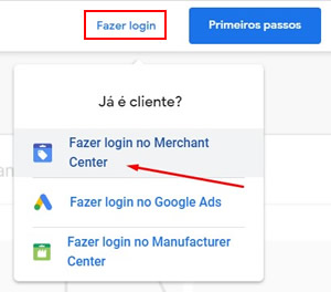 1 - Acesse o link https://www.google.com/intl/pt_br/retail/get-started/?product=merchant-center e faça o login em sua conta.