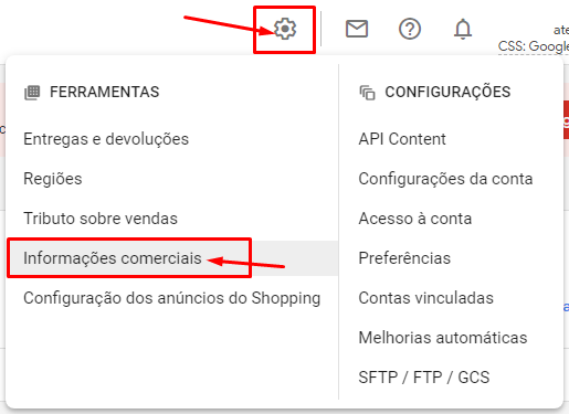 2- Acesse as configurações (ícone de engrenagem) e clique em "Informações comerciais"